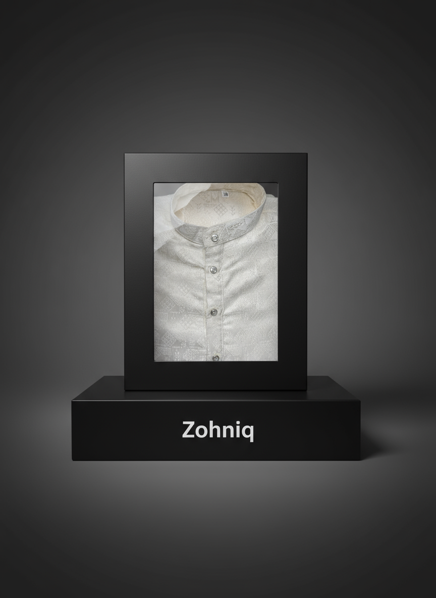 Step into refined tradition with this elegant white kurta, crafted from premium polyester jacquard fabric that offers both durability and a soft sheen. The intricately woven self-design pattern adds depth and character while maintaining a minimalist aesthetic. Designed with a band collar and full sleeves, this kurta brings together modern tailoring and classic elegance, perfect for festive occasions, cultural events, or styled down for a polished everyday look.