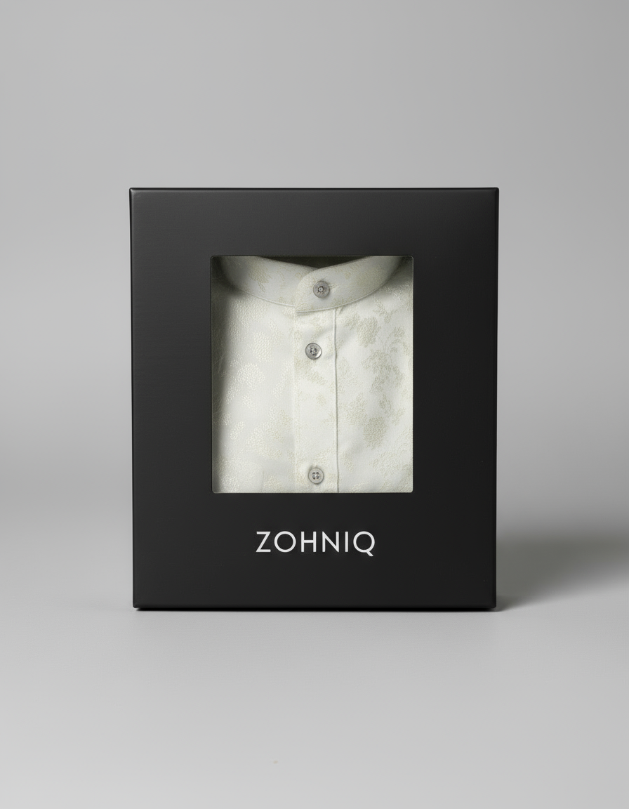 Step into refined tradition with this elegant white kurta, crafted from premium polyester jacquard fabric that offers both durability and a soft sheen. The intricately woven self-design pattern adds depth and character while maintaining a minimalist aesthetic. Designed with a band collar and full sleeves, this kurta brings together modern tailoring and classic elegance, perfect for festive occasions, cultural events, or styled down for a polished everyday look.
